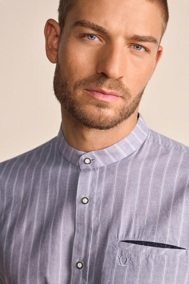 The Samir traditional shirt combines an elegant striped pattern with a modern, stylish look. The practical stand-up collar and the full-length button placket give the shirt classic charm and comfort. Subtle embroidery sets fine accents and gives the shirt a special touch. Perfect for an elegant appearance on various occasions or to add a touch of sophistication to your everyday life.