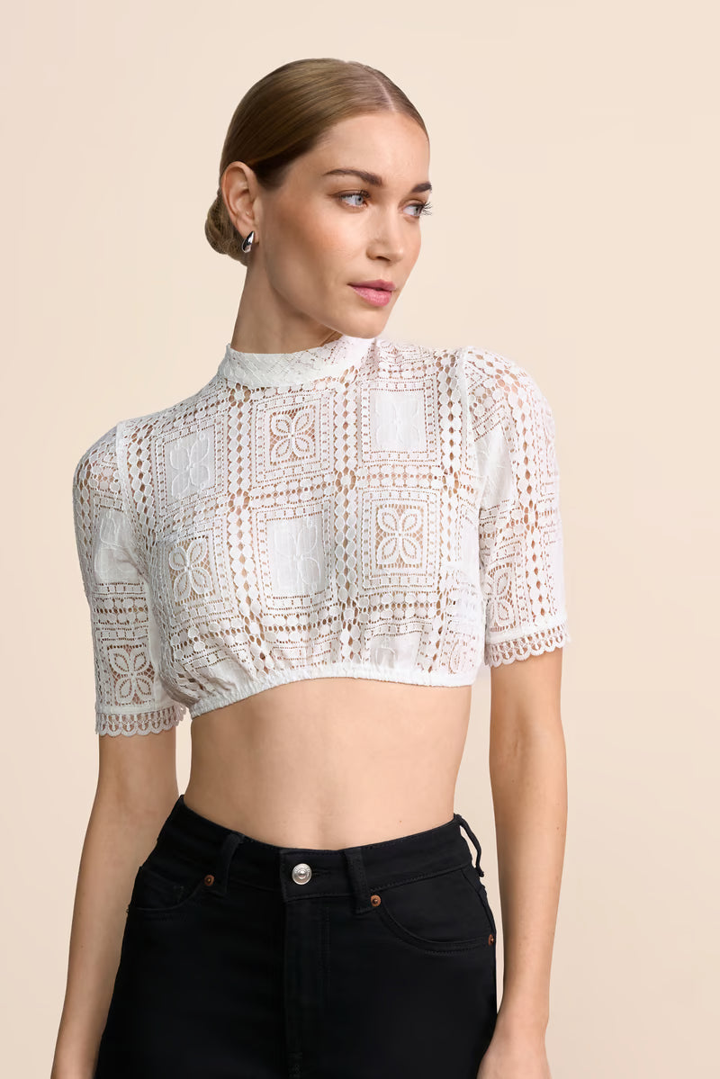 The elegant Larene dirndl blouse impresses with its high-quality lace and stylish high-neck collar, which adds a classic touch. The short sleeves, embellished with pretty details, give the blouse a fresh and playful look. This charming combination makes the Larene dirndl blouse the perfect companion for an all-around successful outfit.