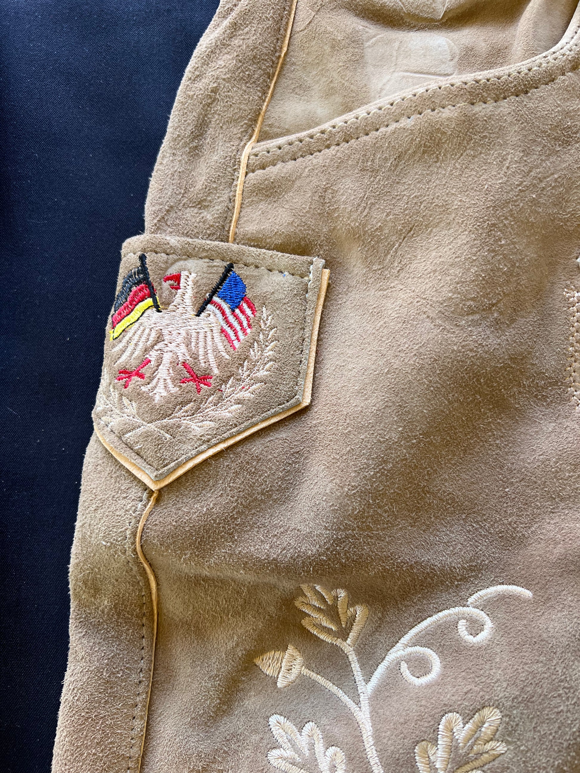 Overall, your lederhosen, with its mountain goat leather, German heritage embroidery, and impeccable fit, is a piece of clothing that not only reflects your appreciation for culture and quality but also offers a unique and distinctive fashion statement. It's an ideal choice for celebrating German heritage or simply embracing a touch of the Alpine lifestyle.
