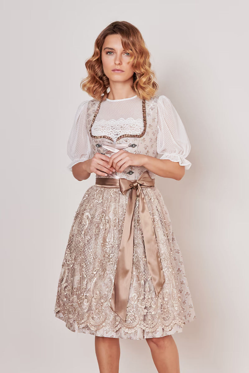 Midi Dirndl 2pcs. 60cm "Kalinda" beige (size 36)