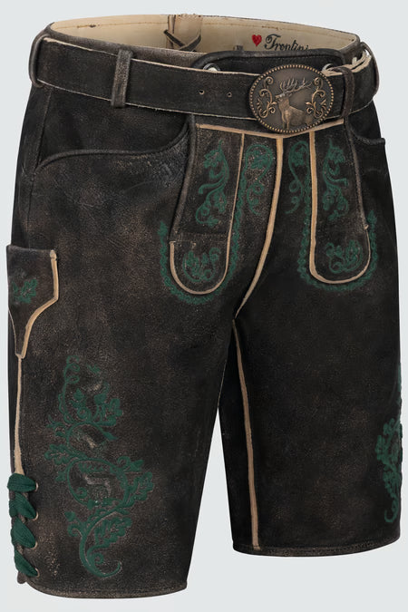 Trentini Men's Lederhosen "Oskar" dark brown with belt